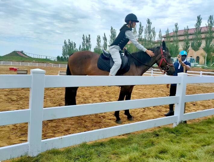 Unser weißer Plastikzaun ist eine langlebige und stilvolle Lösung, um Ihre Pferdefarm oder Reitstätte zu umschließen.Dieser Zaun bietet langlebigen Schutz und ästhetische Anziehungskraft auf Ihr Eigentum.